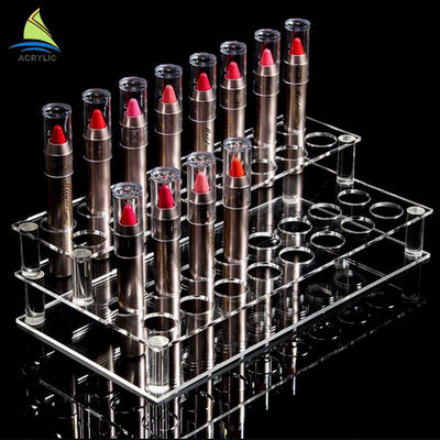 Suporte cosmético estratificado acrílico do organizador do batom dos suportes de exposição do brilho